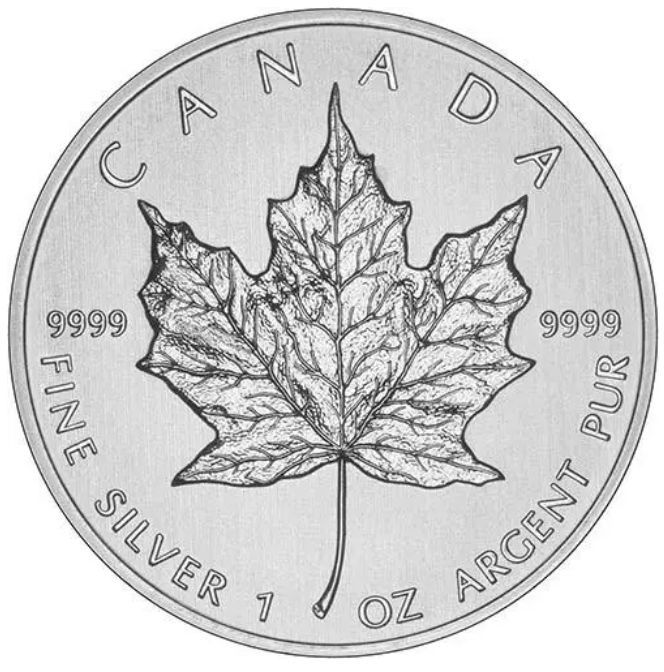 Реверс:На реверсе монеты отчеканен кленовый лист символ Канады, который также изображен на флаге Канады, поэтому и монета называется Кленовый Лист.Вверху, по окружности монеты, отчеканена надпись CANADA – КАНАДА.По бокам «9999» – проба серебра.Внизу, по окружности монеты – (на английском) FINE SILVER 1 OZ (на французском) ARGENT PUR – ЧИСТОЕ СЕРЕБРО 1 УНЦИЯ ЧИСТОЕ СЕРЕБРО.