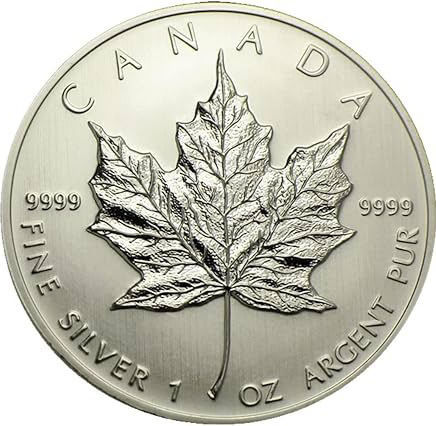 Реверс:На реверсе монеты отчеканен кленовый лист символ Канады, который также изображен на флаге Канады, поэтому и монета называется Кленовый Лист.Вверху, по окружности монеты, отчеканена надпись CANADA – КАНАДА.По бокам «9999» – проба серебра.Внизу, по окружности монеты – (на английском) FINE SILVER 1 OZ (на французском) ARGENT PUR – ЧИСТОЕ СЕРЕБРО 1 УНЦИЯ ЧИСТОЕ СЕРЕБРО.