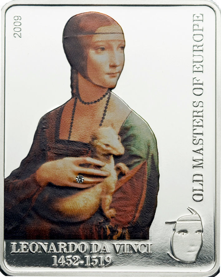 Реверс воспроизводит знаменитую картину Леонардо да Винчи «Дама с горностаем» в высококачественной цветной печати. В кольце на руке дамы инкрустирован настоящий бриллиант. Слева вертикально указан год выпуска 2009, справа надпись OLD MASTERS OF EUROPE, внизу имя художника LEONARDO DA VINCI и годы жизни 1452-1519. В правом нижнем углу маленький профиль Леонардо.