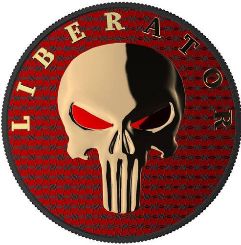 На аверсе монеты расположен череп, символизирующий силу и отвагу. Вокруг него отчеканено слово "Liberator", означающее "освободитель". На заднем плане шаблон в виде колючей проволоки.  Этот дизайн отличается вниманием к деталям, что делает монету уникальной и неповторимой.
