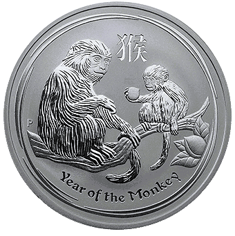 На реверсі: зображена доросла мавпа з молодою мавпою, яка тримає персик, що символізує довголіття і безсмертя. Китайський символ «мавпа» і напис «рік мавпи» також присутні в дизайні з традиційною монетної маркою «P» монетного двору Перта.