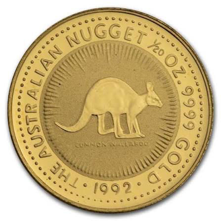 Реверс монети прикрашений зображенням валлару — австралійської тварини, що займає проміжне місце між кенгуру та валлабі. Під зображенням розміщено напис «COMMON WALLAROO». По колу монети вказано назву серії «THE AUSTRALIAN NUGGET», вагу «1/20 OZ» та чистоту золота «.9999 GOLD», а внизу зазначений рік випуску — 1992. Центральний мотив оточений стилізованими променями, що підкреслюють тварину у композиції.